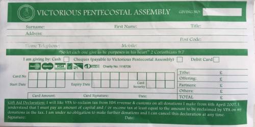 As the music built to a crescendo, direct debit forms emerged – and worshippers were told to come to the front and “pay your tithes”.
