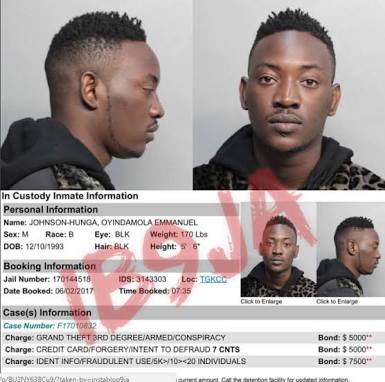 The 25-year-old whose real name is Johnson-Hunga Oyindamola Emmanuel, was arrested on Friday, alongside another Nigerian identified simply as Chukwuebuka.