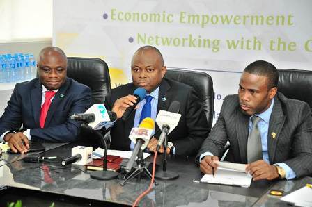 L-R: Head, Managed SME, Fidelity Bank Plc, Ken Opara; Managing Director/Chief Executive Officer, Fidelity Bank Plc, Nnamdi Okonkwo and President, Africa’s Young Entrepreneurs (AYE), Summy Smart Francis at the media parley on the partnership between Fidelity Bank and AYE which held in Lagos.