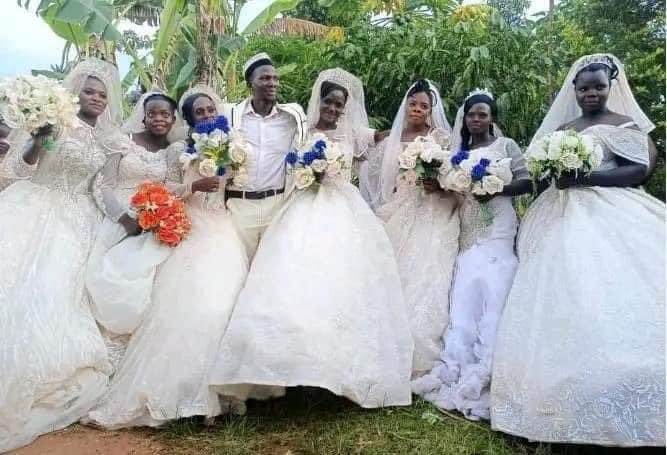 A Ugandan businessman, Habib Nsikonnene, wedded seven wives on Sunday, September 10, in Uganda.