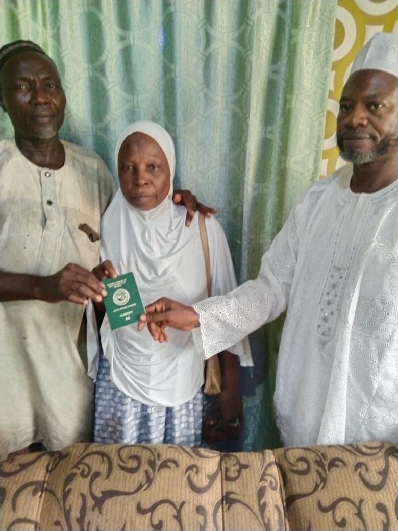 While speaking with newsmen during the presentation of international passport and other travelling documents to Mrs. Mistura Oluwafunmilola Abdullah at her residence; No. 19, Temitope Street, Boluwaji Area, Ibadan, Oyo State, Alhaji Folaranmi disclosed that the gesture was borne out of the woman’s commitment, dedication and submission to the work of Allah since two decades ago.