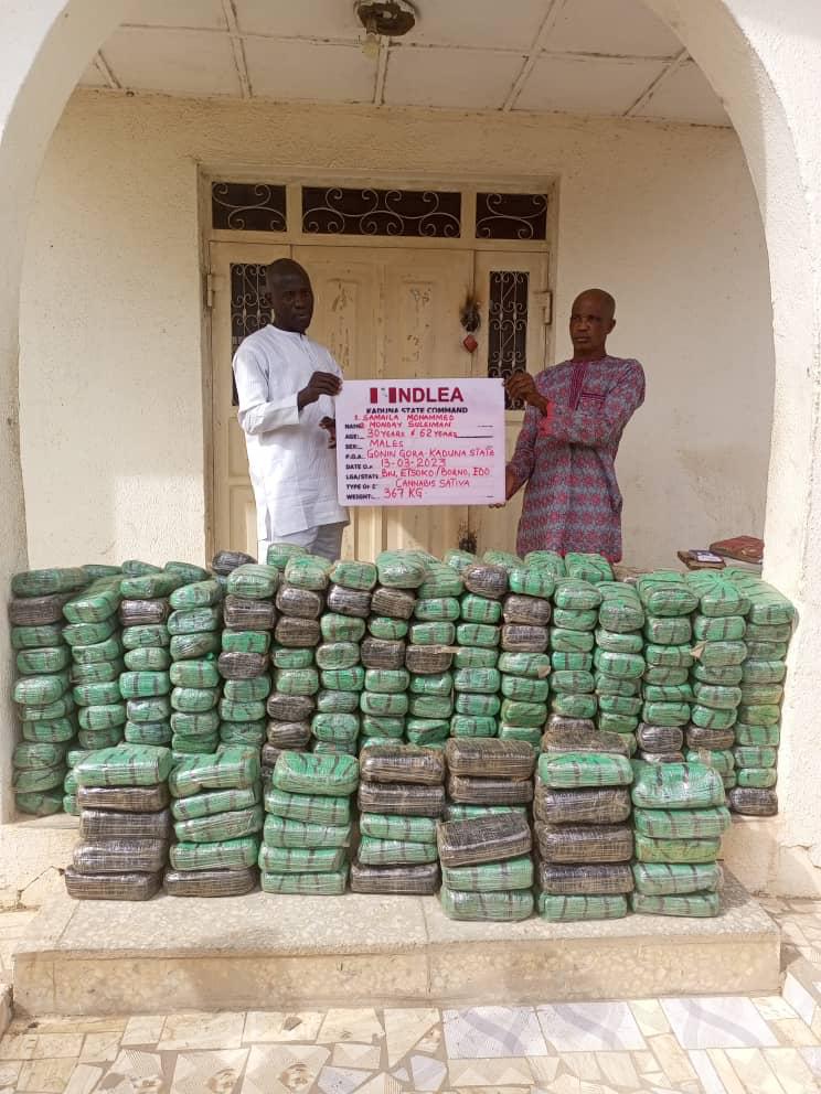 In Kaduna, 367 kilograms of cannabis sativa were recovered from a vehicle with registration number FKJ141DX. Two suspects: Monday Suleiman, 62, and Sama’ila Mohammed, 30 were arrested while a bribe of One Million Two Hundred Thousand Naira (N1,200,000) offered NDLEA officers were documented as part of exhibits to prosecute the suspects.