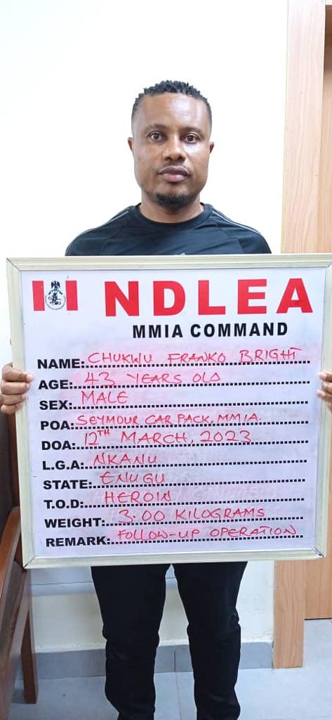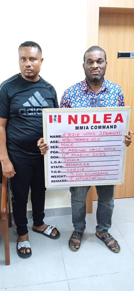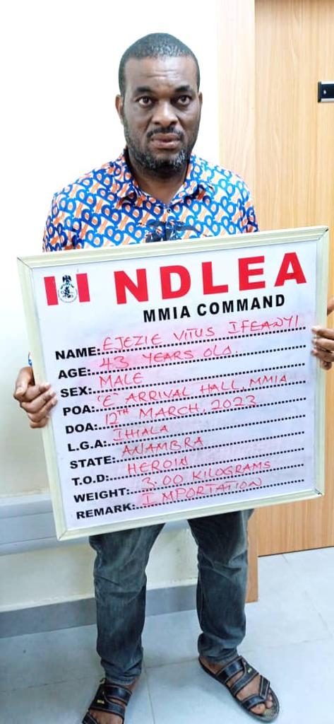 Operatives at the Lagos airport had on Monday 13th March intercepted a member of the drug syndicate, Ejezie Vitus Ifeanyi, during screening of inward passengers on Ethiopian Airline flight from Malawi via Addis Ababa at the arrival hall.