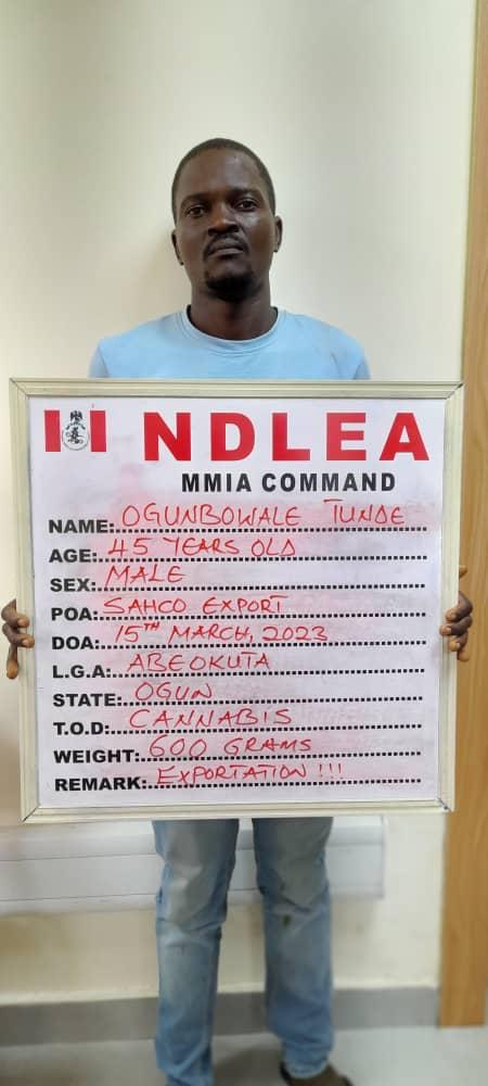 Meanwhile, NDLEA operatives at the SAHCO export shed of the MMIA on Wednesday 15th March intercepted a jerrycan of palm oil going to Dubai, United Arab Emirates. At the point of examination, it was discovered that 600 grams of cannabis sativa were concealed inside the jerrycan of palm oil. A suspect, Tunde Ogunbowale who presented the consignment for export to Dubai was immediately arrested. This is even as attempt to export 2.7kg cannabis packaged as part of dried onions to Dubai through a postal service firm was frustrated by NDLEA officers attached to the courier company, who seized a carton filled with colourful sachets of dried onions, used to conceal the illicit consignment.