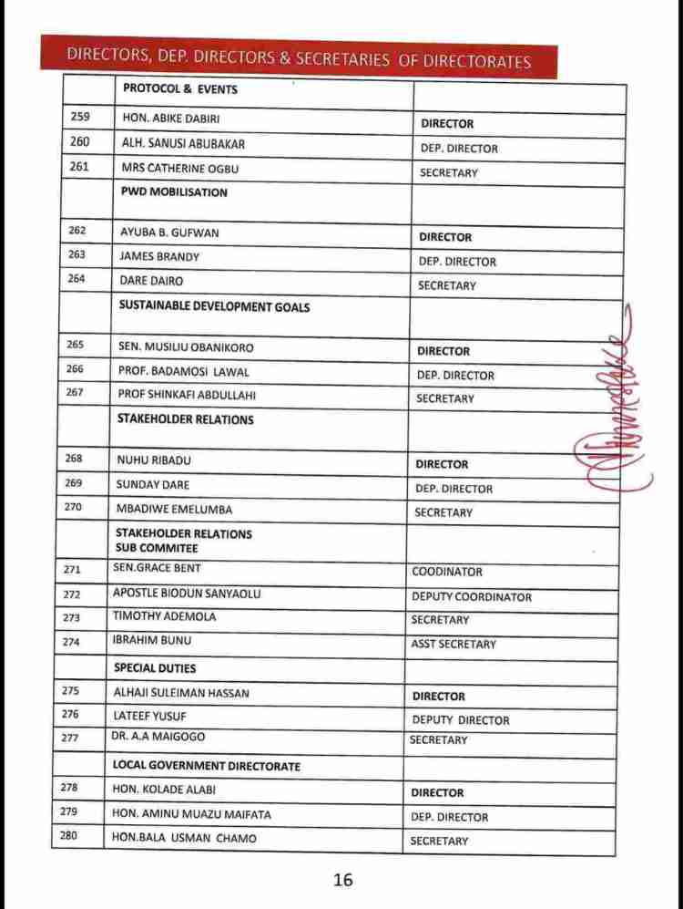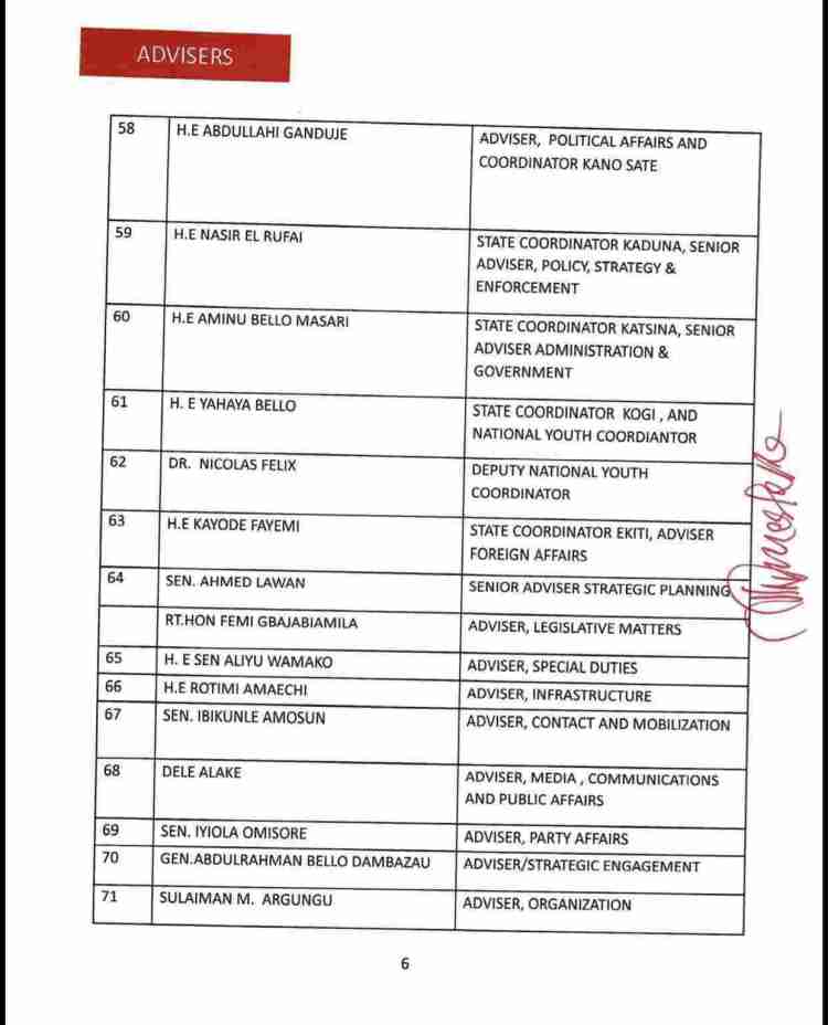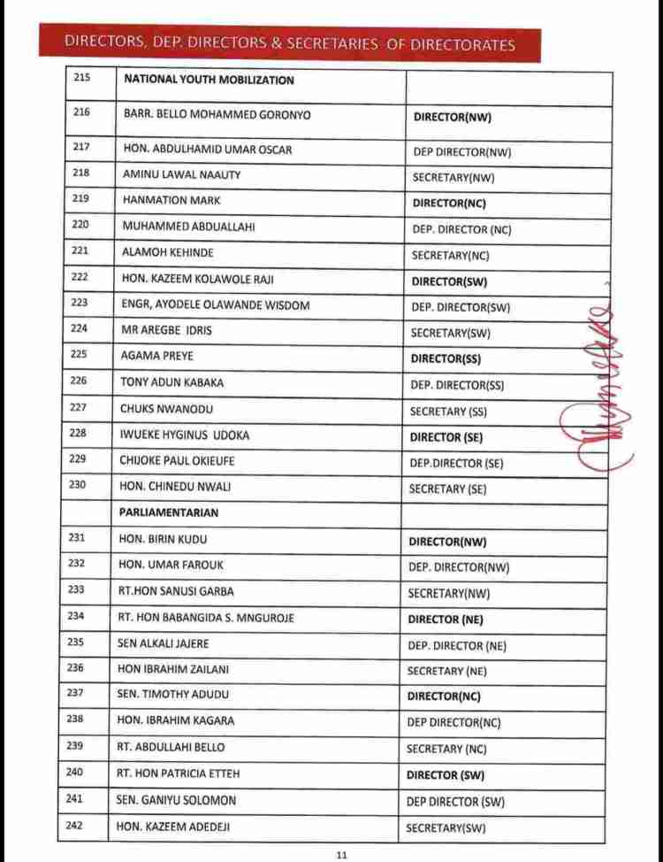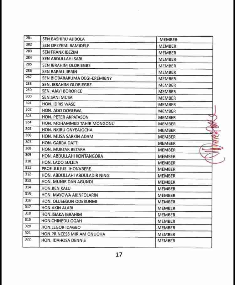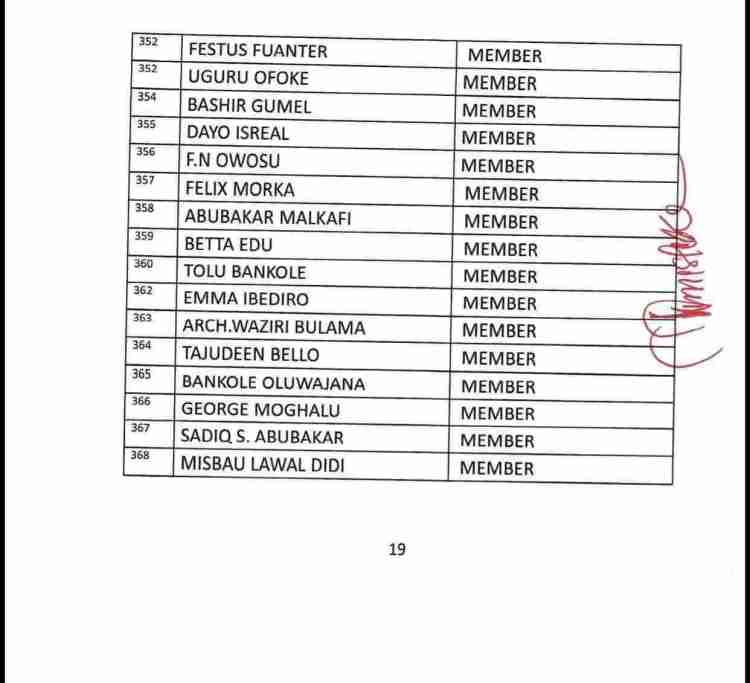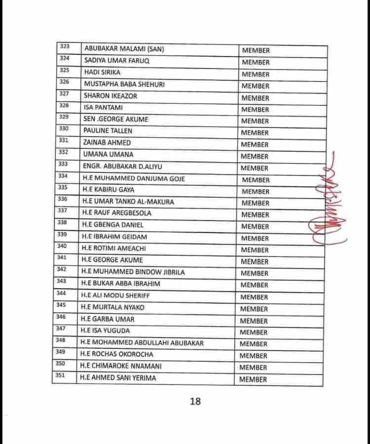 The list also consists of the names of serving as well as former State Governors of the party, ministers and senators who are still members of the APC, Board of Trustees, among others.