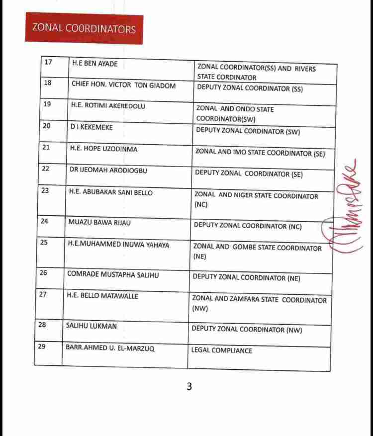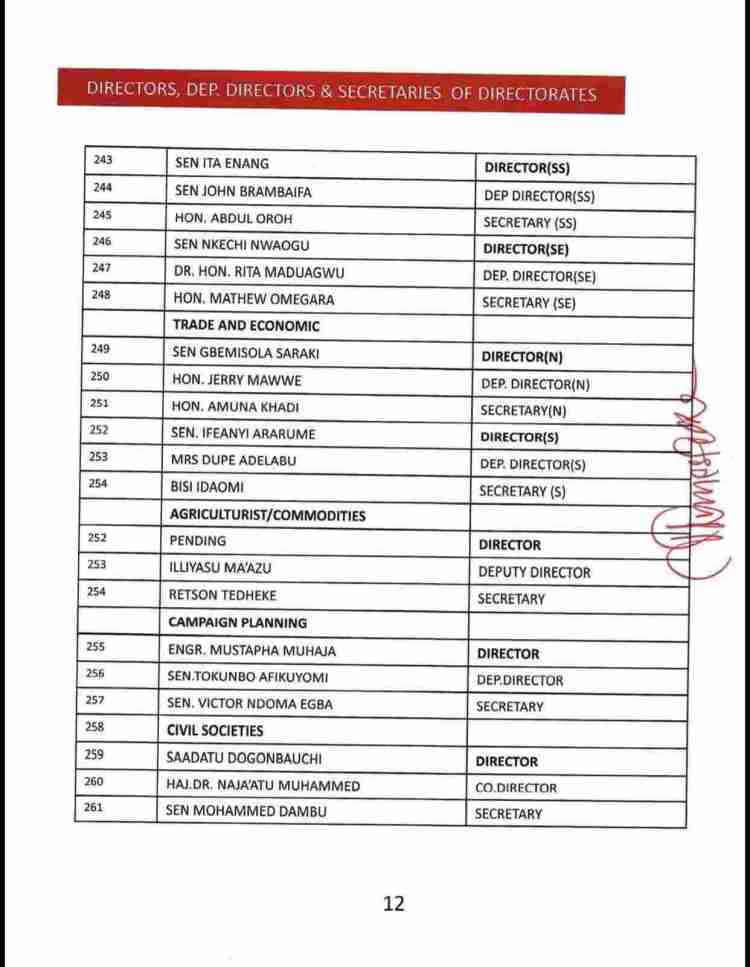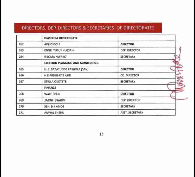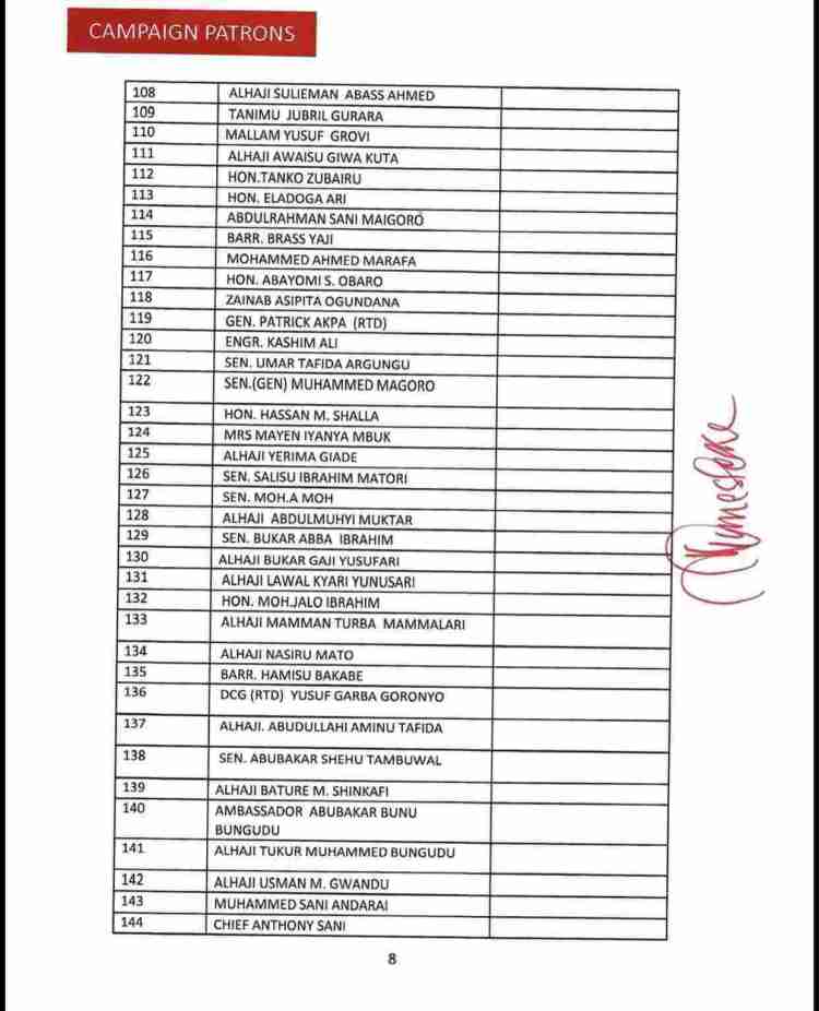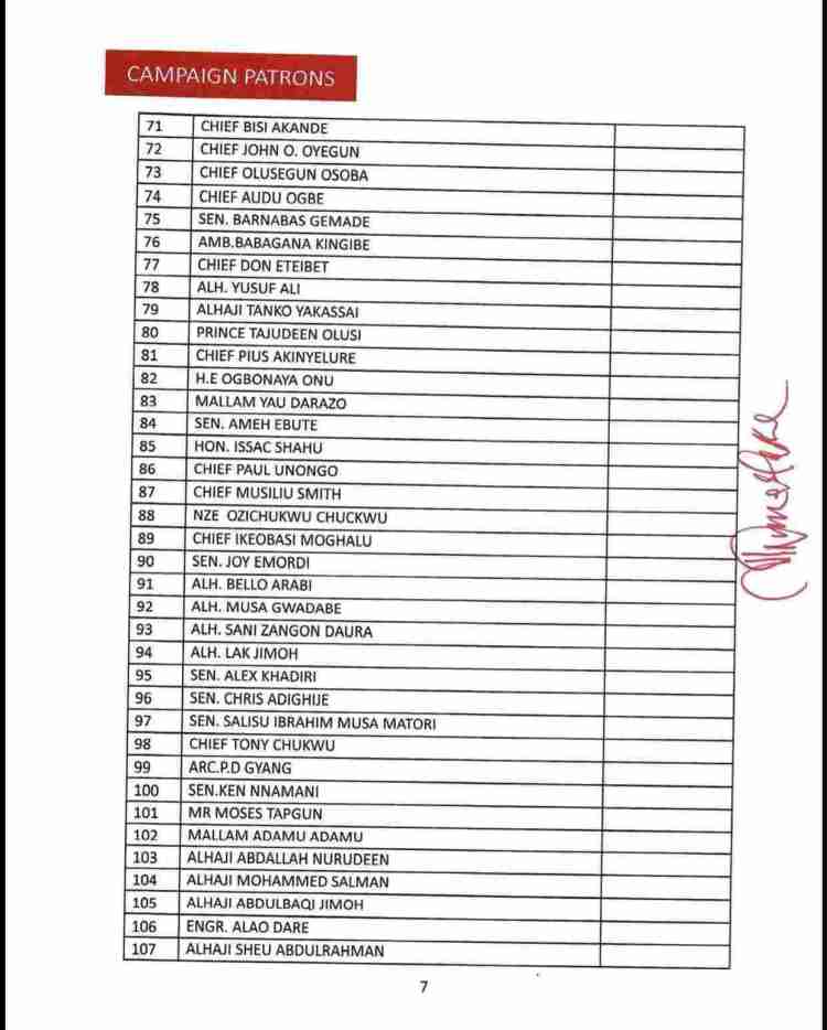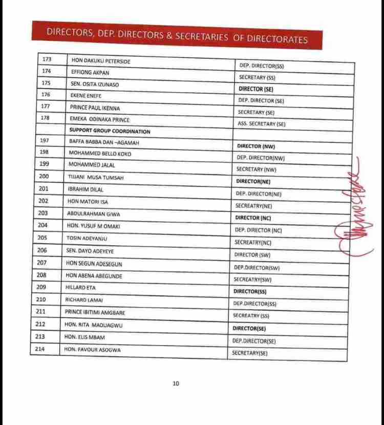 The list also consists of the names of serving as well as former State Governors of the party, ministers and senators who are still members of the APC, Board of Trustees, among others.