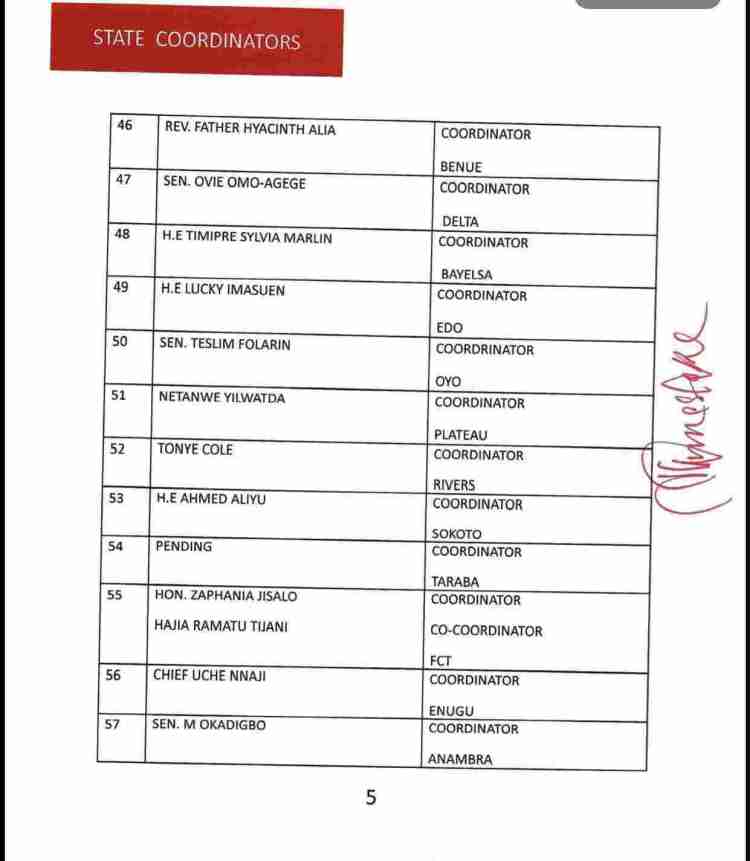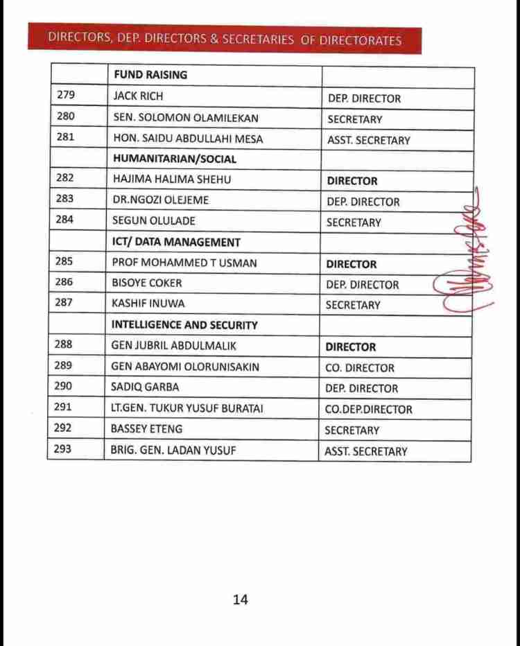 Adams Oshiomhole, a former chairman of the APC was also appointed as deputy director-general (Operations), Hadiza Bala Usman, a former managing director of the Nigerian Ports Authority (NPA) – deputy director-general (Admin), while Hon. James Faleke will serve as the secretary to the council.