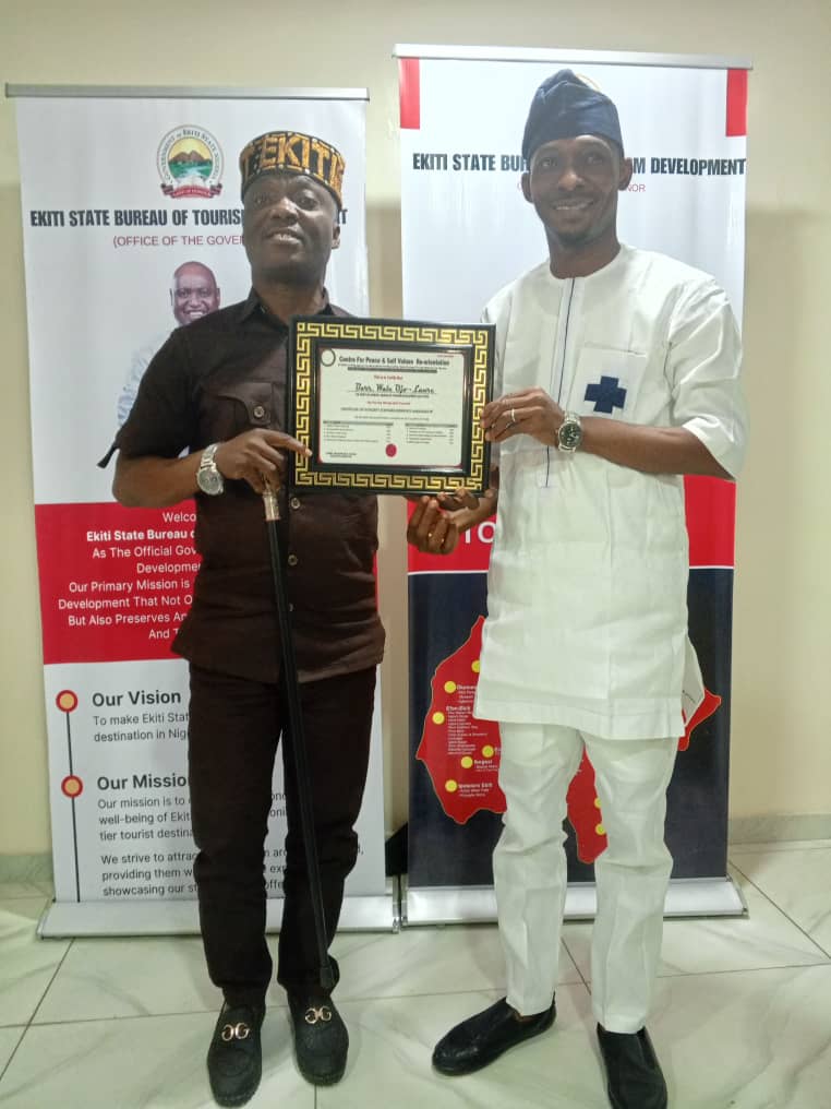 The Centre for Peace and Self Value Re-orientation, an Abuja-based advocacy group, has presented an award to Barr. Wale Ojo-Lanre, the Director-General of the Ekiti State Bureau of Tourism Development, in recognition of his exemplary service and integrity.