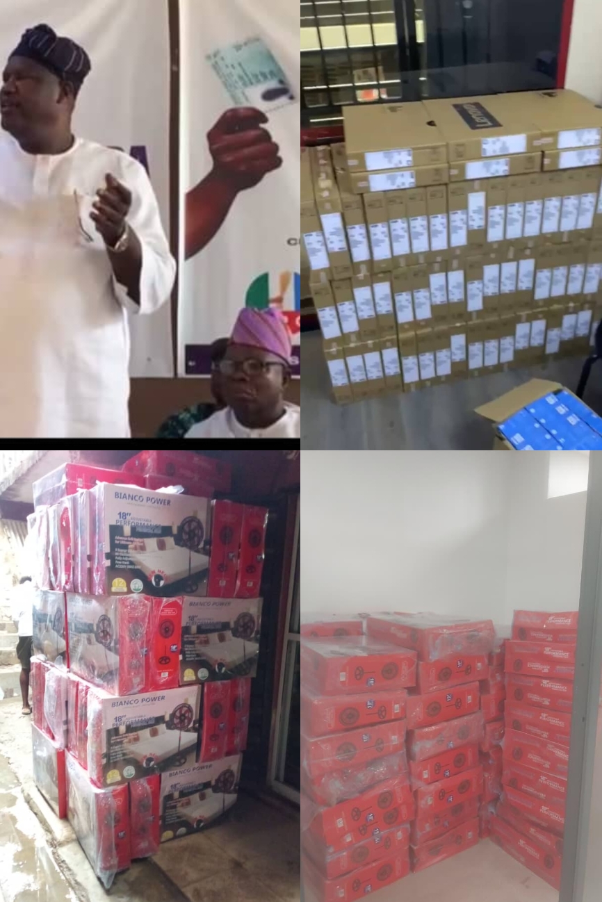 Items presented to the chairmen included 57 HP desktop printers, 57 Lenovo Laptops, 57 Generators, 57 MTN wifi with subscription for 6 months, 57 Electric standing fans, 57 surge protector extension leads, 57 HP mouse and banner for public awareness for the registration.