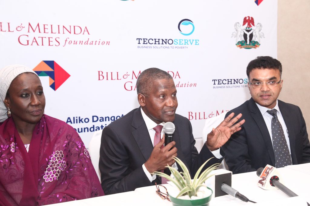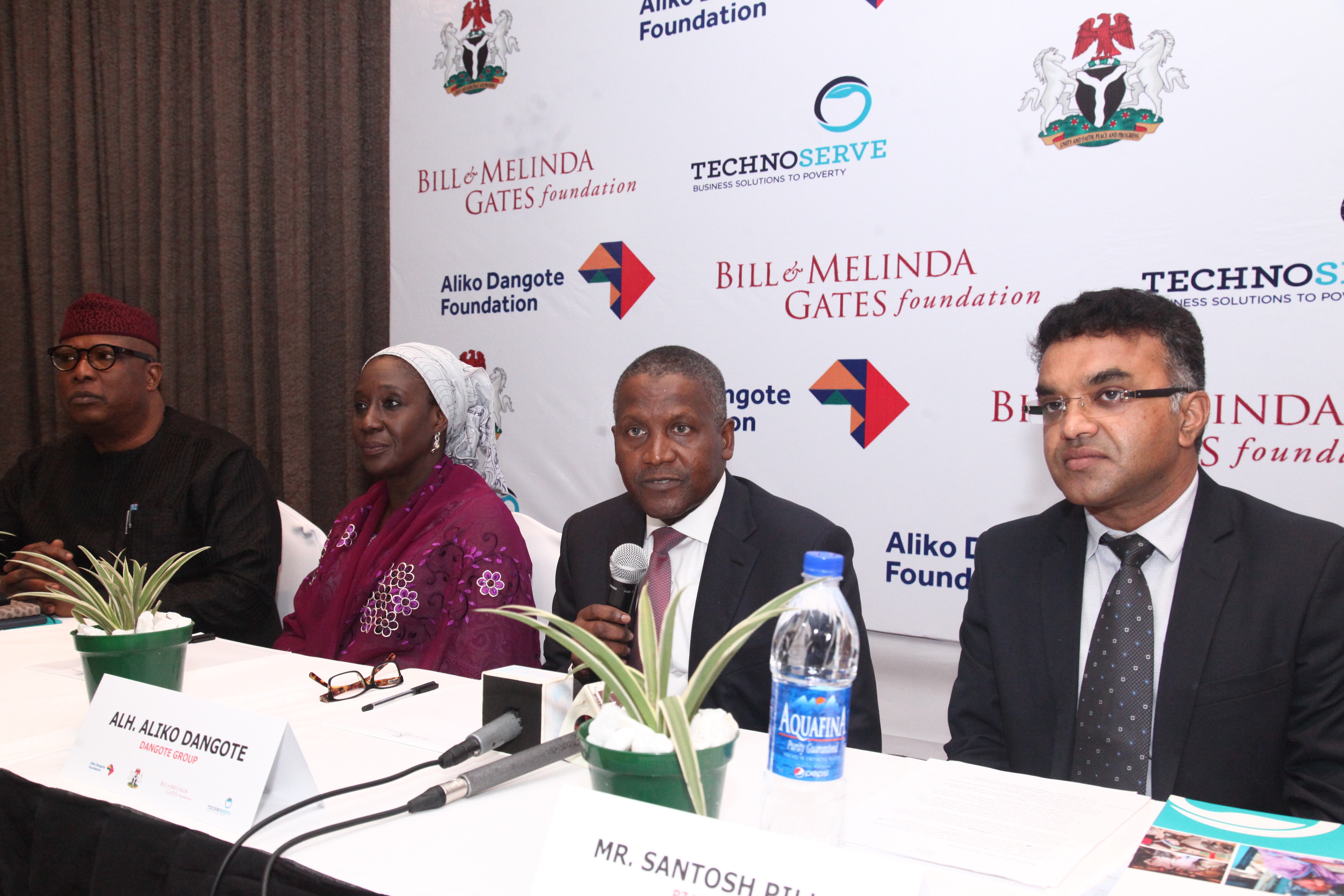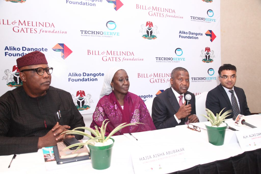 Senator Babafemi Ojudu,Representing vice President Osinbanjo. Hajia Aisha Abubakar, Hon.Minister of state,Federal Ministry of ndustry, Trade and Investment, Alhaji Aliko Dangote and Mr Santosh Pillai, Managing Director, PZ Wilmar (West Africa) discussing at Nigeria Food Processing and Nutrition CEO Forum, held in Lagos over the weekend