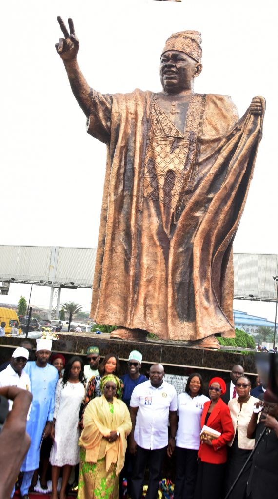 Lagos State Governor, Mr. Akinwunmi Ambode on Tuesday unveiled a 46-feet statue of Nigeria’s symbol of democracy and adjudged winner of the June 12, 1993 Presidential Election, Bashorun Moshood Kasimawo Olawale Abiola (MKO), expressing optimism that the monument will forever crystallize what he stood for in his lifetime.