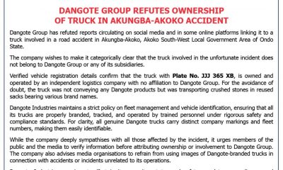 Dangote Group has refuted reports circulating on social media and in some online platforms linking it to a truck involved in a road accident in Akungba-Akoko,...