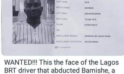 Police in Lagos on Sunday declared a Lagos BRT driver wanted in whose bus a 22-year-old lady was allegedly kidnapped. The alleged victim, Miss Oluwabamise Ayanwola,...