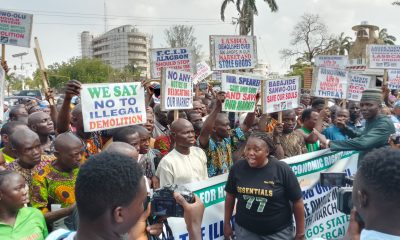 Scores of traders in the demolished Owode Onirin spare parts market have protested to the Lagos House to seek redress over the demolition. The protesting market...