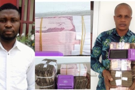 “He was arrested while in possession of N554,600.00 (five hundred and fifty-four thousand, six hundred naira). The two suspects would soon be charged to court,” The spokesman said.
