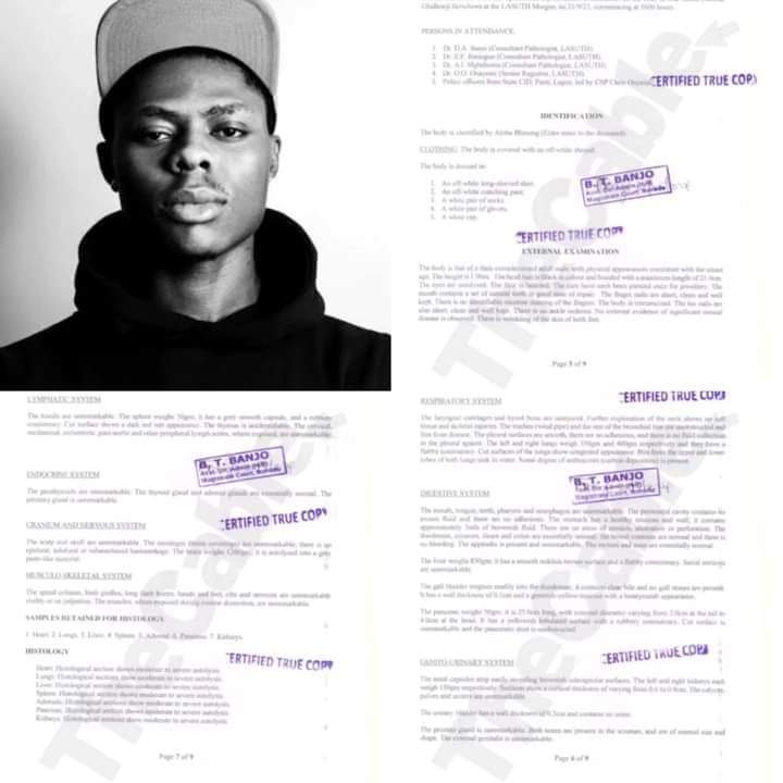 The report, shows that the autopsy was conducted at the Lagos State University Teaching Hospital (LASUTH) and included a toxicology test.