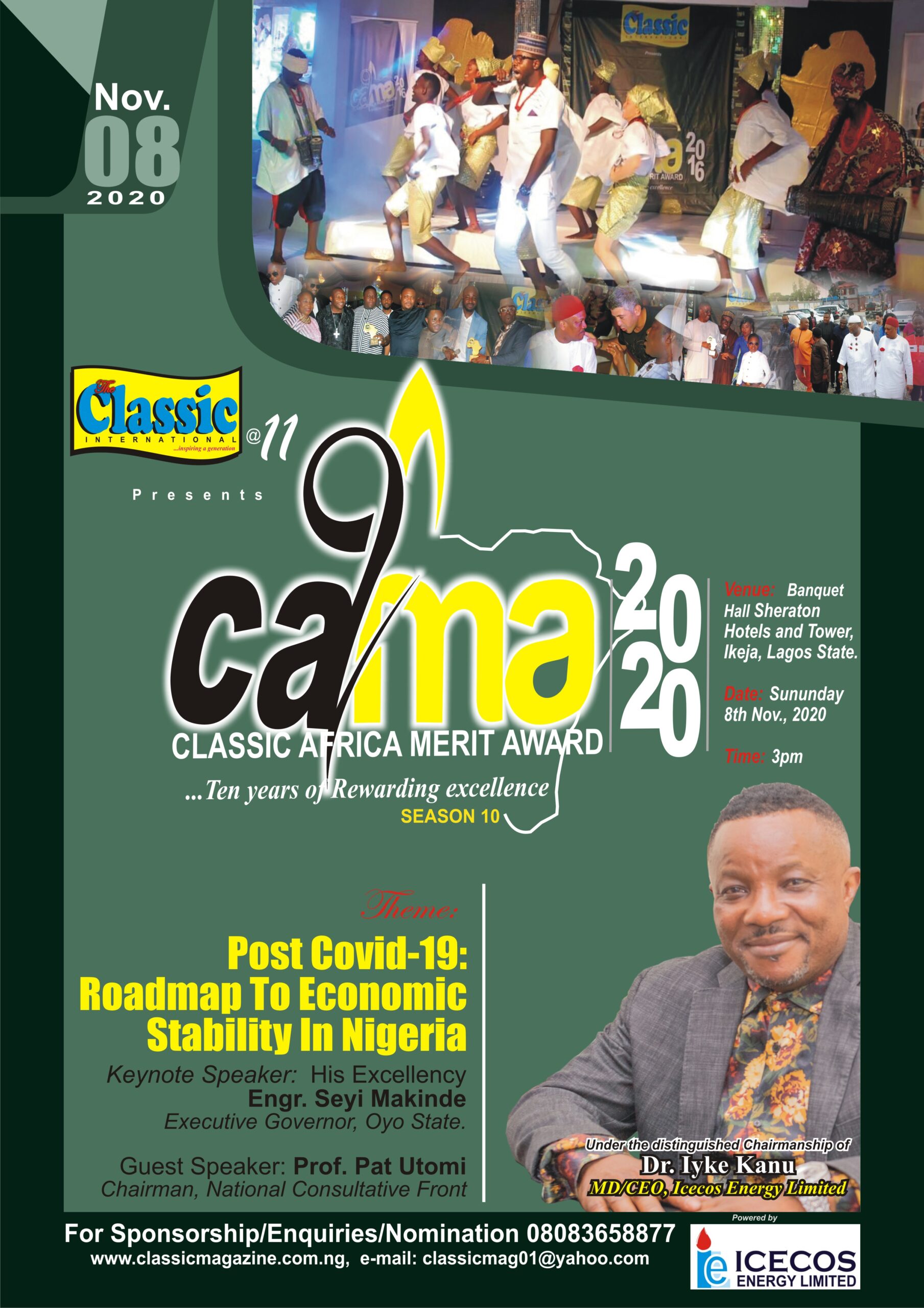 Come Sunday, November 8, 2020, all roads would lead to the prestigious Sheraton Hotel, Lagos for the 10th edition of Classic Africa Merit Award tagged CAMA 2020 to celebrate the 11th anniversary of Classic International Magazine.