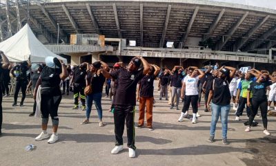 CIBN President, Prof. Pius Olarenwaju (middle) and other bankers at the National Stadium Surulere in Lagos during a fitness walk on Saturday