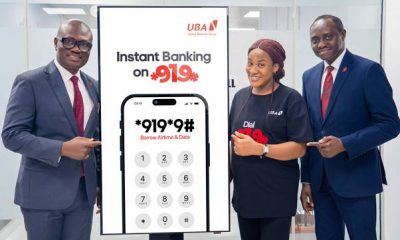 L-R: Group Head, Retail and Digital Banking, United Bank for Africa (UBA), Shamsideen Fashola; Team Lead, USSD and SMS Banking, United Bank for Africa (UBA), Eva...