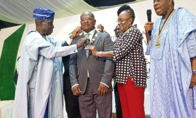 Caption: L-R: Past President, Chattered Institute of Bankers (CIBN), Mr Femi Ekundayo; Prof. Pius Olarenwaju, President and Chairman of Council of CIBN; Past President, CIBN, Mrs...