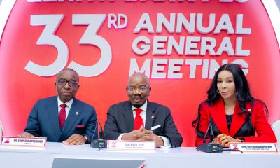 Caption: Founder and Chairman of Zenith Bank Plc, Jim Ovia, CFR (Centre) flanked by the Group Managing Director/Chief Executive, Dr. Ebenezer Onyeagwu (Left) and the Deputy...