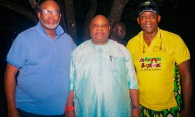 Caption: Governor Ademola Adeleke (middle) is serenaded by Otunba Wanle Akinboboye on the right and Dr. Peter Obafemi on the left