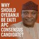 But honestly, tell me! Why should Biodun Abayomi Oyebanji (BAO) be the consensus candidate of the All Progressives Congress (APC) in Ekiti State? Why? Yes, tell...