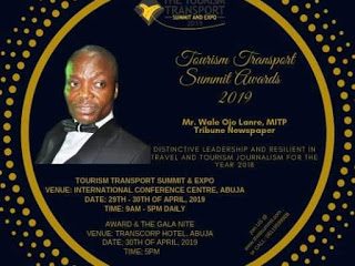 Ambassador Wale Ojo-Lanre, an Associate Editor of the Nigerian Tribune Newspapers, has been confirmed for the award of Distinctive Leadership and Resilient in Travel and Tourism Journalist of...