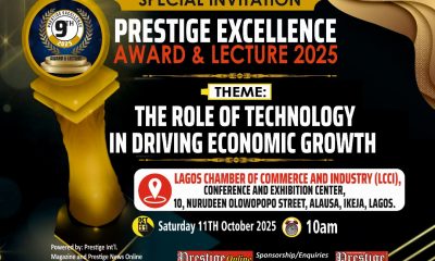 All is set for the 9th Prestige Excellence Award and Lecture 2025. The prestigious event is slated for Saturday, October 11, 2024 at Lagos Chamber of...