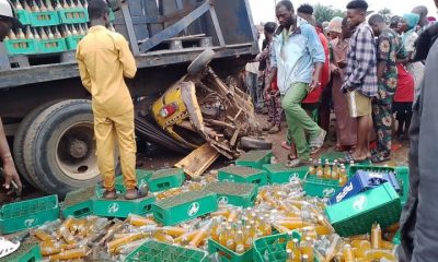 An accident involving a trailer loading tiles and a lorry loaded with soft drinks occured at notorious Oke-Elesin area along Amuloko , Akanran road, Ibadan the...