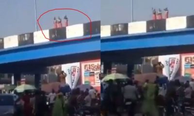 Three unidentified young men caused a spectacle in public after they stormed a bridge in Ibadan to bath in broad daylight. The boys were seen clad...
