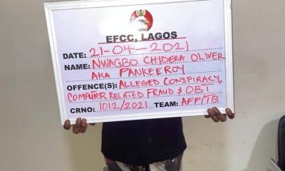 Operatives of the Economic and Financial Crimes Commission, EFCC Advance Fee Fraud section Lagos office, have arrested an Instagram comedian and social media Influencer, Nwagbo Oliver...