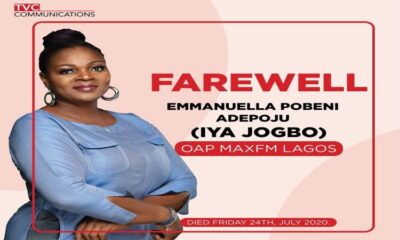 The management of TVC Communications, owners of TVC, TVC News and Max FM Lagos and Abuja today announced the passing on of Emmanuella Pobeni Adepoju (popularly known...