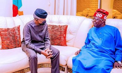 All Progressives Congress presidential candidate Asiwaju Bola Tinubu on Thursday visited Vice President Yemi Osinbajo in his residence at the presidential villa.