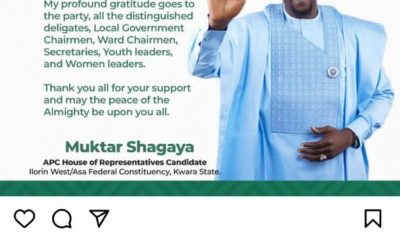 Muktar Shagaya,the amiable son of billionaire Bola shagaya, has emerged the candidate of the All Progressives Congress (APC) for Ilorin West/Asa Federal Constituency in Kwara State....