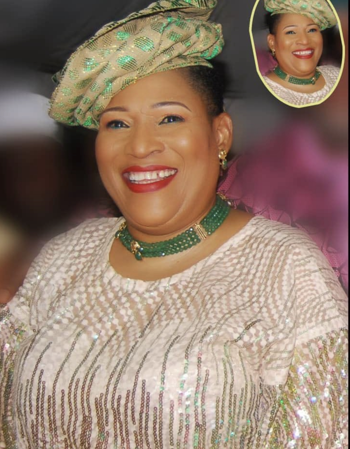 For the records, Chief (Mrs.) Kemi Nelson was born on February 9, 1956 to the illustrious Tinubu-Meredith/Laja families, and she is well known in the social circle for her low-cut hairstyle, her unique headgear and her dancing prowess.