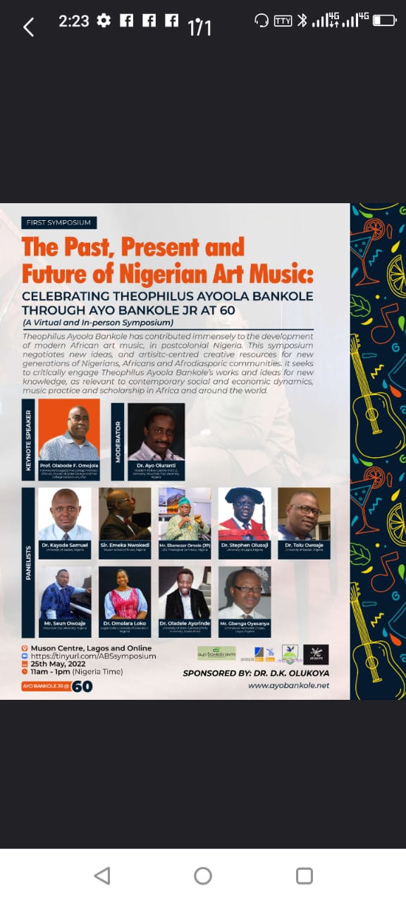Celebrating Theophilus Ayoola Bankole through 60 years of Ayo Bankole jr, via Symposia & Concert