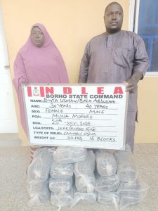 In Borno, a 30-year-old lady Binta Usman was on Wednesday 23rd July arrested by NDLEA officers who recovered 30.1kg skunk from her house at Muna Moforo area of Maiduguri.