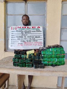 In Lagos, NDLEA operatives on Wednesday 23rd July intercepted a suspect Chidi Agbafo along Epe – Ajah expressway while taking consignments of 21.7kg Colorado, some of which were packaged in moimoi cooking sachets and 3.8litres of codeine based syrub in a commercial bus to deliver in Warri and Oghara, Delta state.