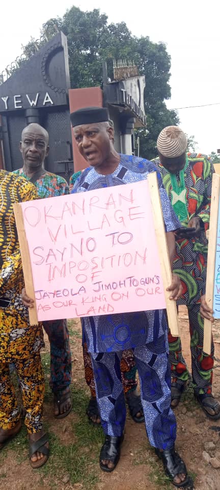 In protest, members of the Akapo Royal Family of Okaran Village, led by Elder (Prince) Oluwatoyin Akapo (Family Head), Prince Adebiyi Akapo (Family Secretary) and Princess Temitope Akapo (Family Treasurer), staged a peaceful demonstration on Wednesday, August 27, 2025, at the palace of the Olu of Ilaro and Paramount Ruler of Yewaland, His Royal Majesty Oba (Dr.) Kehinde Gbadewole Olugbenle (Asade Agunloye IV), who also serves as President of the Yewa Traditional Council.