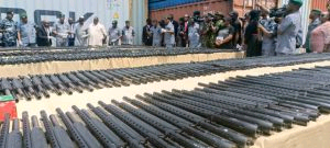 “On Friday 21st of June 2024, the auspicious container was subjected to a thorough physical examination. Inside the container were 844 units of assorted riffles and 12,500 pieces of life ammunition,” which Adeniyi said were “concealed with various items like doors, furniture fittings and leather bags.”