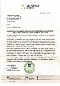 The PDP leaders’ counsel, Johnson Usman, SAN, had demanded an immediate retraction of the statements and a public apology within three days .