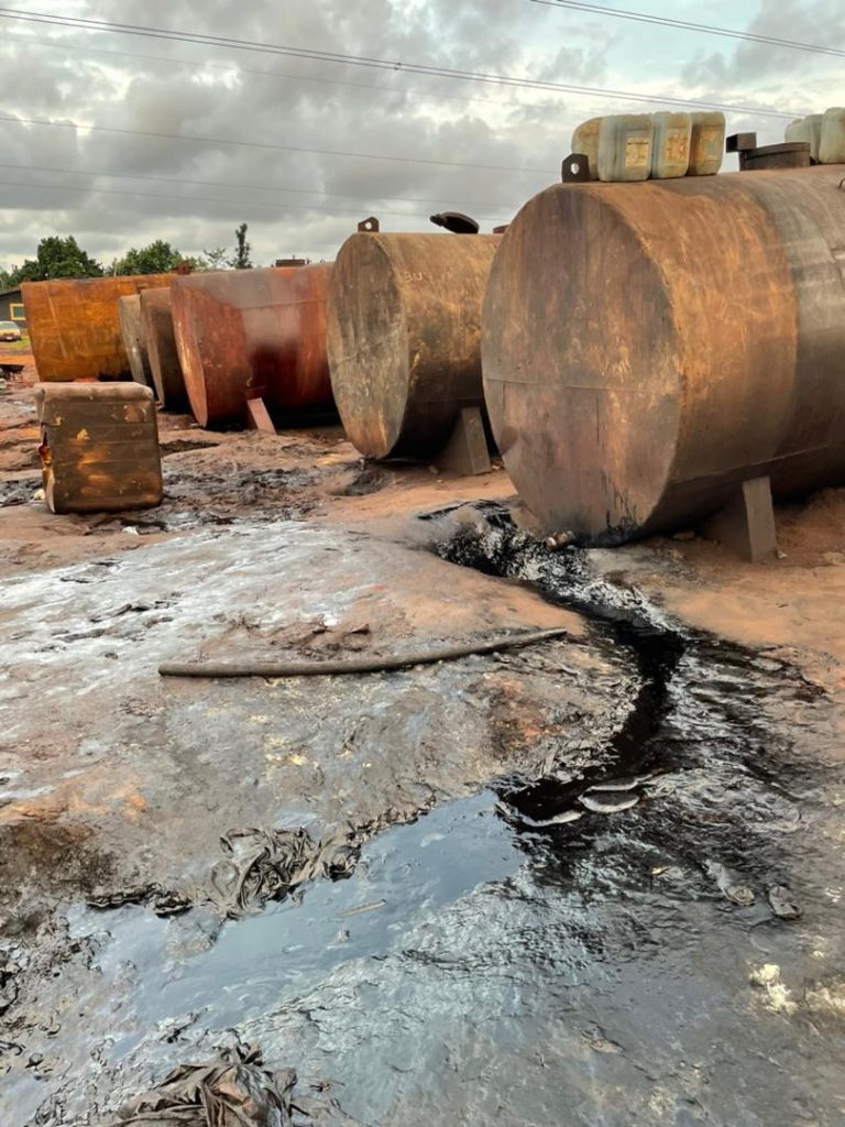 He said consequent  to the raid on the illegal petroleum refining site, three (3) empty DAF Trucks, thirty-one (31) immobile surface tanks – 7 of which were loaded with unspecified quantity of petroleum products, were discovered by the Police.