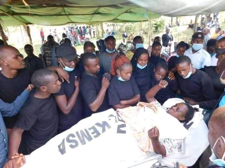 Tears fell freely at a burial in Bomet, east Africa after a woman who has been in the hospital arrived at her husband’s burial in an ambulance, and was confined to a hospital stretcher bed.