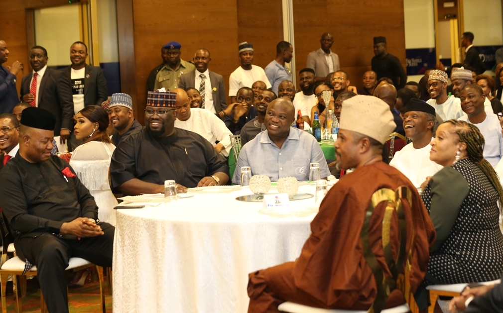 The duo spoke at an event organised for entertainers and tagged “An Evening with the Vice President” held at the Eko Hotels and Suites, Victoria Island and was well attended by scores of entertainers including actors, comedians and musicians, among others.