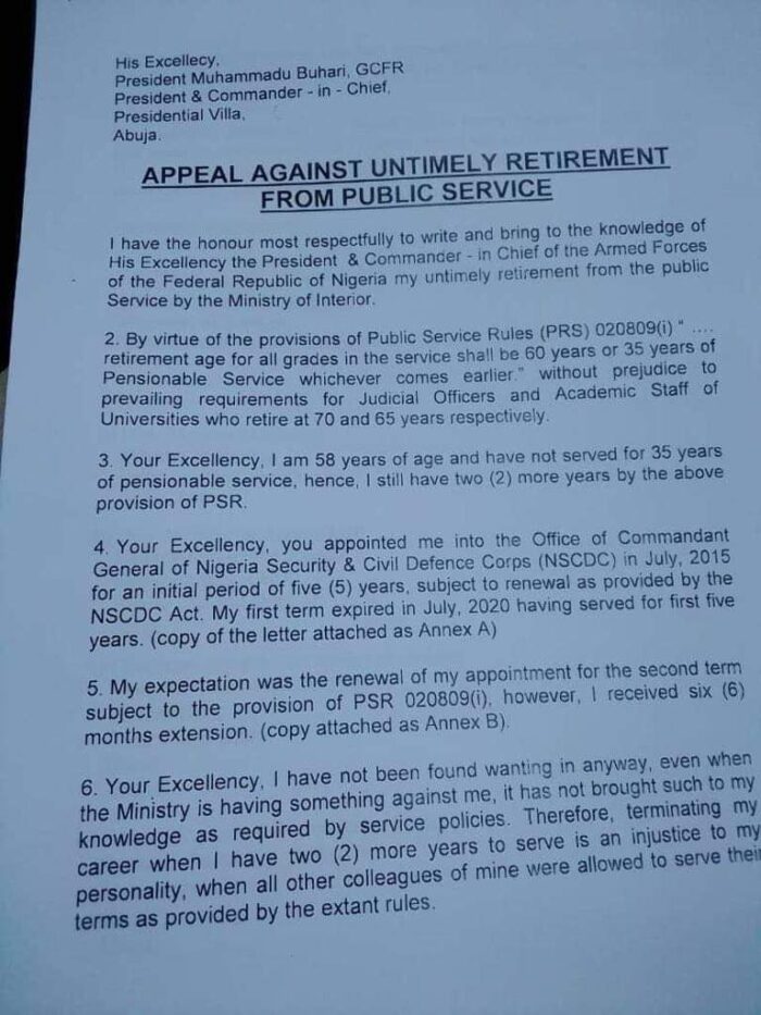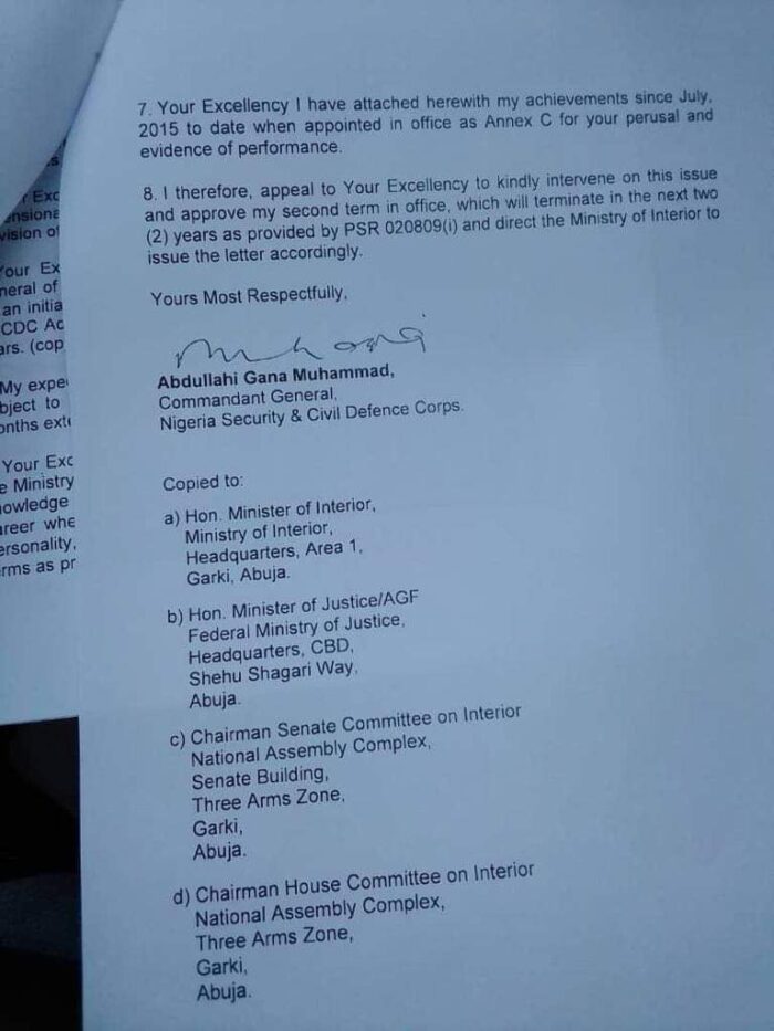 Ex-NSCDC Boss, Gana, begs Buhari for tenure elongation…See Exclusive Memo Inside