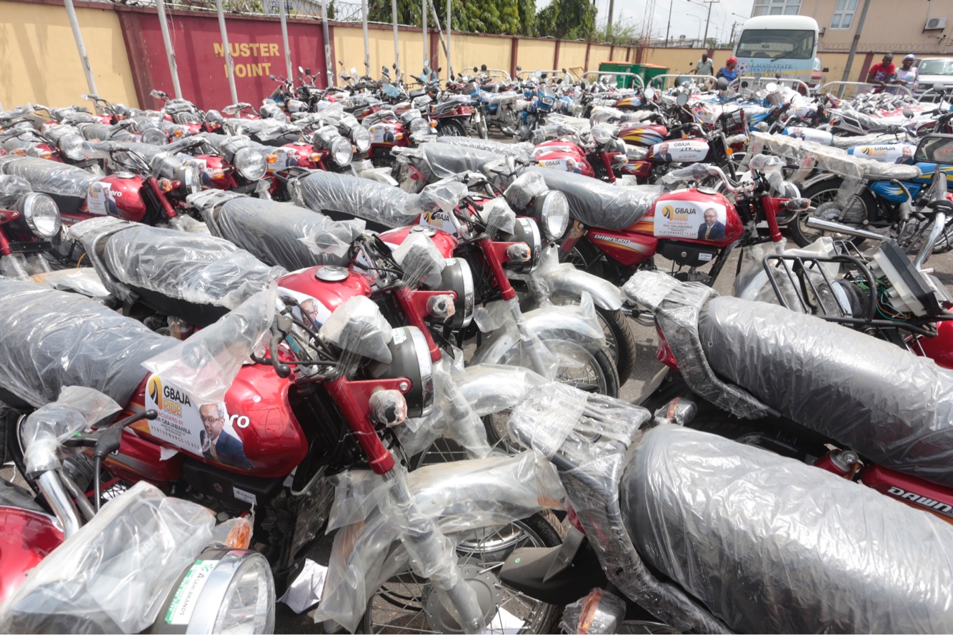 However, in homage to his humanity and relentless strides at rewriting the political narrative, the Majority Leader of the House of Representatives, today donated 30 Buses,160 Motorcycles, and 25 Tricycles to residents of his constituency.