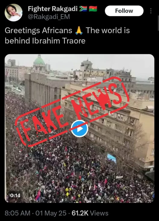 SERBIAN PROTEST VIDEO USED TO DEPICT SOLIDARITY RALLY FOR TRAORE