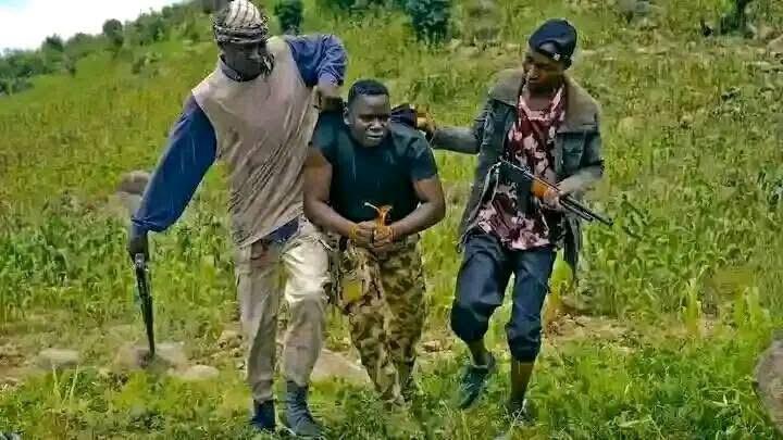 However, verification has revealed that the pictures are not from a real-life abduction. Instead, they are behind-the-scenes shots from a Hausa movie currently being filmed. The man in the photos is an actor, not a soldier. The camouflage trousers he wore were part of a costume often used in Kannywood films to depict military or security characters.