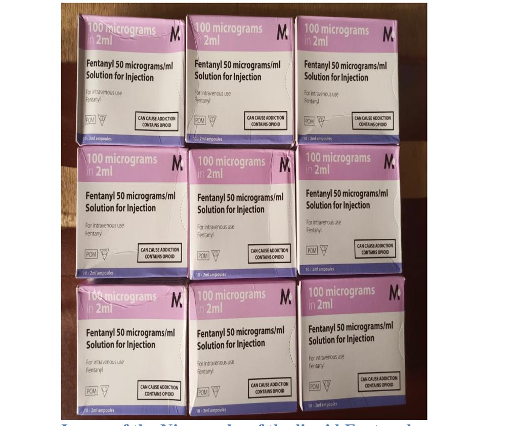 While packs of liquid Fentanyl were recovered from Odoh, different quantities of banned and controlled drugs including Fentanyl were seized from Uzoma. They include: Ampules of Fentanyl Injection; Ozempic solution for injection in pre-filled pens; Ampules of Sustanon 250mg/ml; Ampules of Rivavirin injection 200mg/2ml; Ampules of Erythropoietin injection; Ampules of Recombinant Anti Rho-D Immunoglobulin injection 300MG; Ampules of Pethidine 100mg/2ml solution for injection and Zoladex 3.6mg Goserelin.